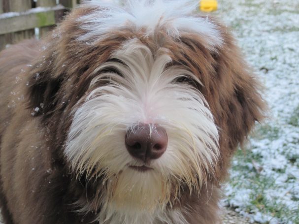 Im Alter nahmen ihr Appetit und auch ihre Bellfreudigkeit zu. Als sie später auch nichts mehr hören konnte verständigten wir uns über Sichtzeichen und sie lief wie ein Schatten immer hinter mir her. Sie war ein toller Beardie der viel mit mir erlebt hat und liegt nun bei uns im Garten begraben.